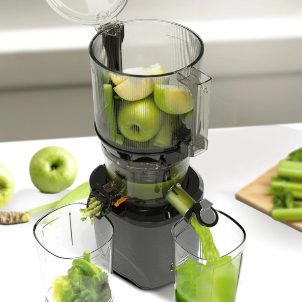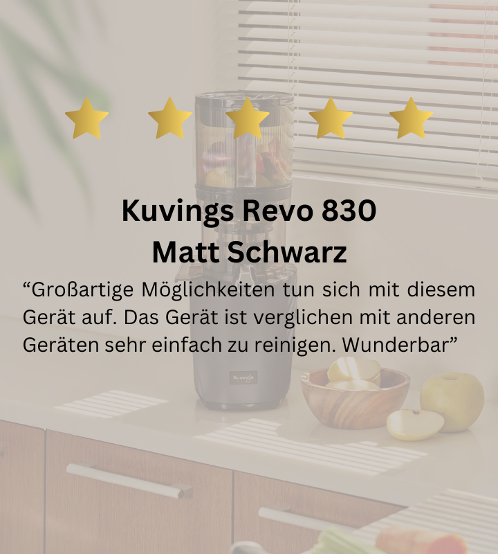 Kuvings überzeugt durch benutzerfreundliche, leistungsstarke Entsafter, die mit Komfort und Effizienz im Vordergrund stehen. Besonders hervorzuheben ist das patentierte Whole Slow Juicer System, das es ermöglicht, ganze Früchte ohne vorheriges Schneiden zu entsaften. Dies spart Zeit und bewahrt die natürlichen Aromen und Nährstoffe Ihrer Zutaten. Mit Features wie dem breiten Einfüllschacht und leisen Betrieb bieten Kuvings Entsafter eine einfache und angenehme Saftzubereitung.